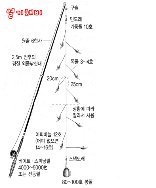 ¹Ù´Ù ¹Ø¹Ù´Ú¿¡ ¼½ÄÇϱ⠶§¹®¿¡, ±×¹°ÀÇ ¾Æ·§±êÀÌ ¹Ù´Ù ¹Ø¹Ù´Ú¿¡ ´êµµ·Ï ÇÏ¿© ¾î¼±À¸·Î ±×¹°À» ²ø¾î¼ Àâ°Å³ª, ÇÑ °¡´ÚÀÇ ±â´Ù¶õ ÁÙ¿¡ ÀÏÁ¤ÇÑ °£°ÝÀ¸·Î ÁÙÀ» ´Þ°í, ±× ³¡¿¡ ³¬½Ã¿Í ¹Ì³¢¸¦ ´Þ¾Æ ¹Ù´Ù ¹Ø¹Ù´Ú¿¡ ´êµµ·Ï µå¸®¿ü´Ù°¡ Â÷·Ê·Î °ÅµÎ¾î ¿Ã¸®¸é¼ ³¬ÀÎ °í±â¸¦ ¶¼¾î³½´Ù.